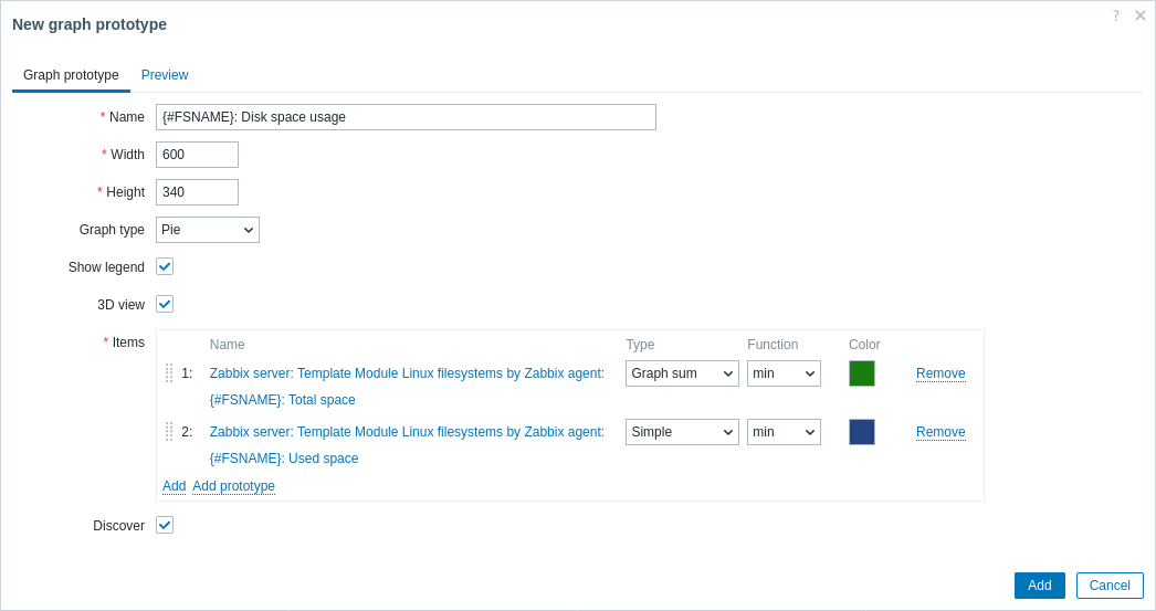 Discover | If checked (default) the graph will be added to a discovered entity. If unchecked, the graph will not be added to a discovered entity, unless this setting is overridden in the discovery rule. |