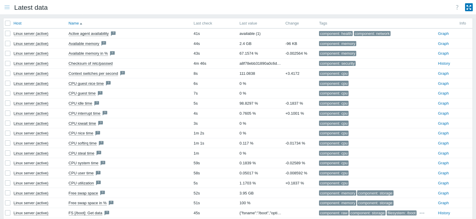 In Zabbix this template is ready to use. It contains pre-configured elements ready for data collection, visualisation and analysis.