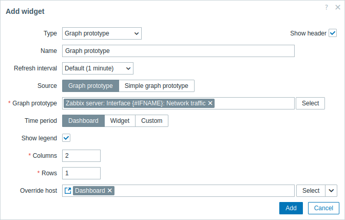 Columns | Enter the number of columns of graphs to display within a graph prototype widget. |
