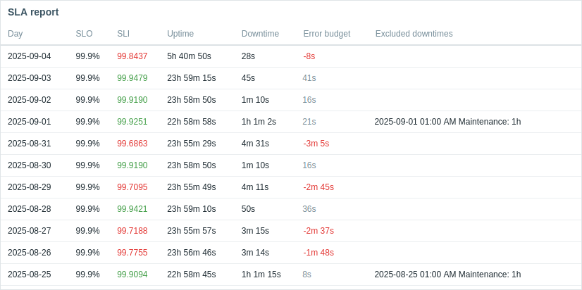 The SLA report widget displays SLA reports, helping you monitor service performance against defined targets.