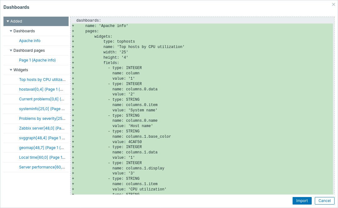ページコンテンツのみを表示します(キオスクモード)。 キオスクモードは、次のURLパラメータでもアクセスできます: /zabbix.php?action=dashboard.view&kiosk=1。通常モードに戻るには: /zabbix.php?action=dashboard.view&kiosk=0。 |