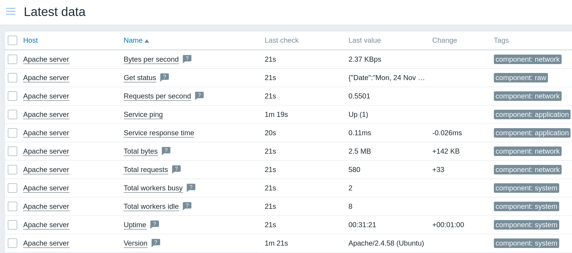 The goal of this step is to make sure that Apache web server statistics can be read by Zabbix.