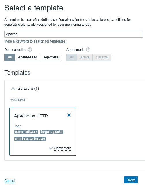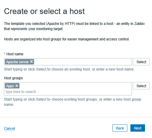 To apply the template, start the Host Wizard (in Data collection > Hosts):