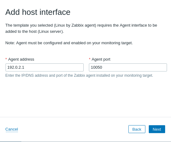To start monitoring a non-local Linux server you need to know its IP address, and the IP address of the Zabbix server.