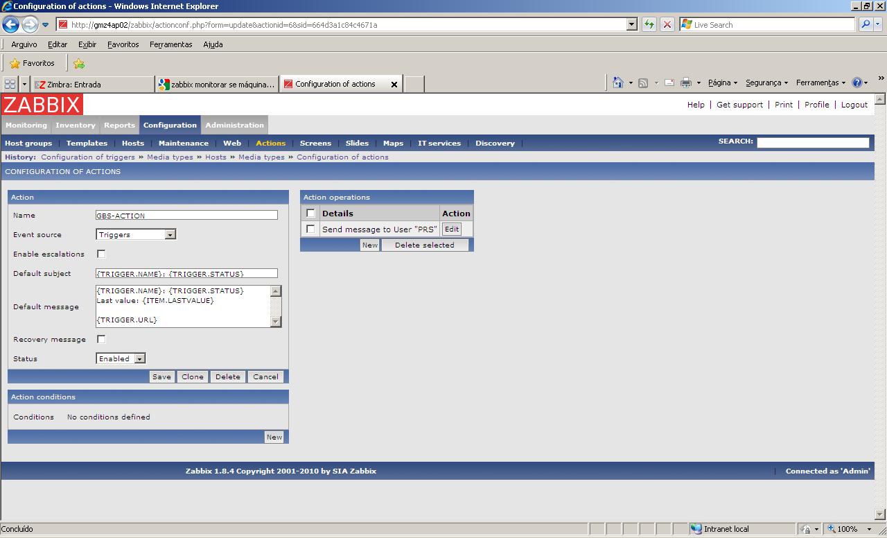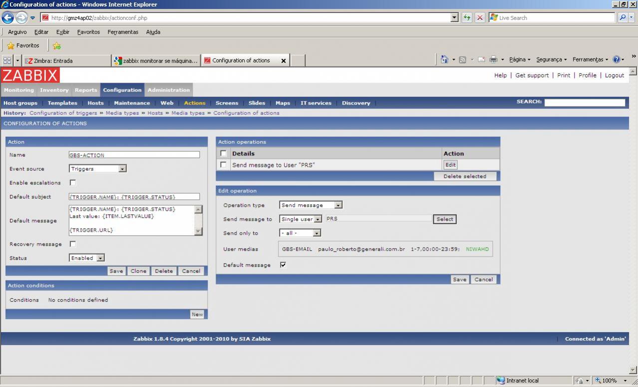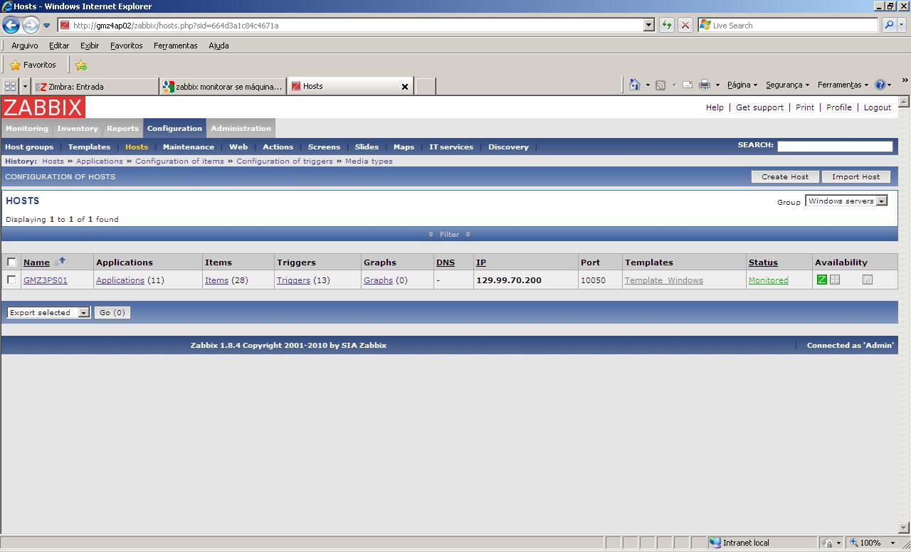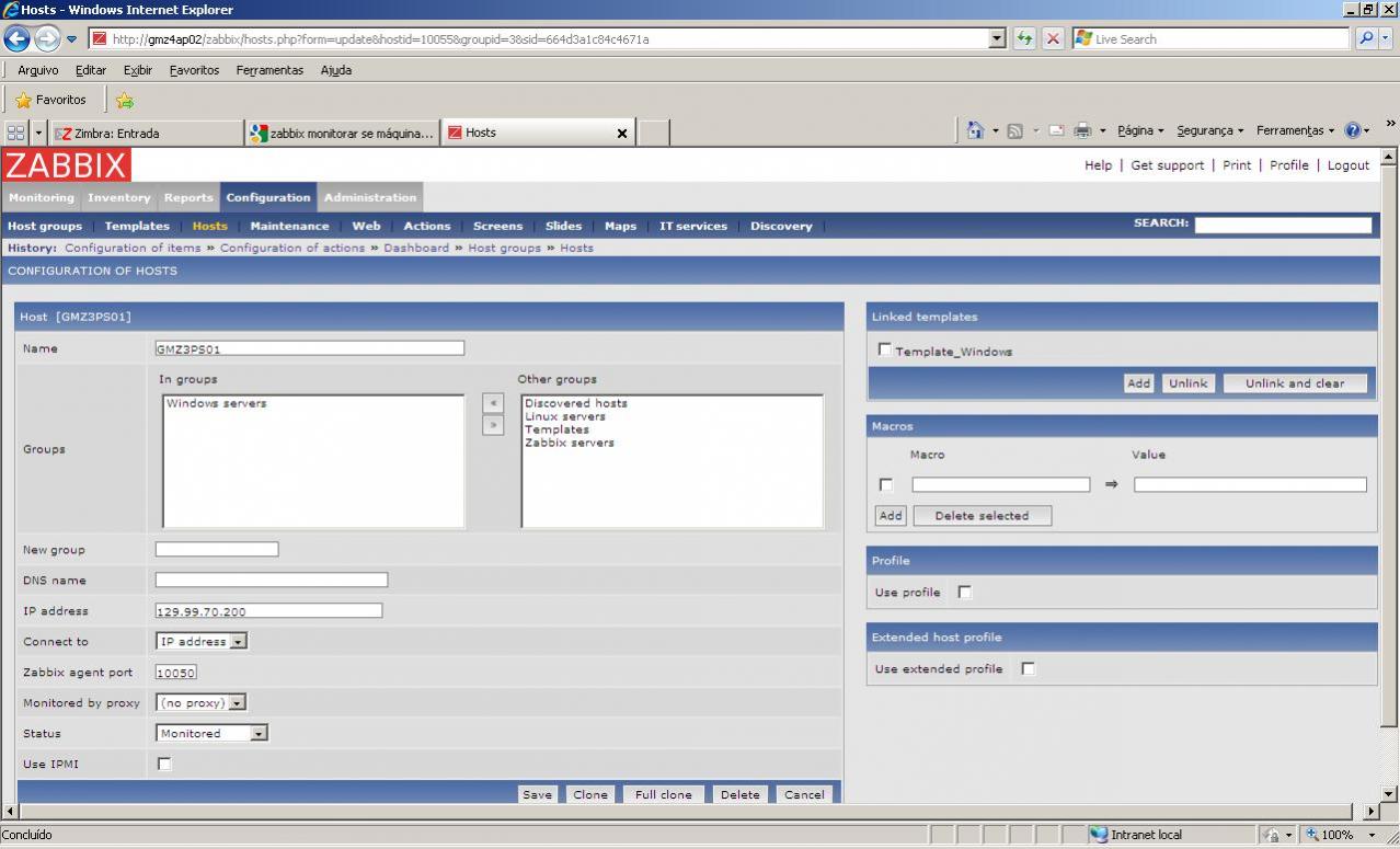Implementei algumas ações a mais, como configurar "media", usuário para envio de email e associei meu servidor a template "Windows Servers".