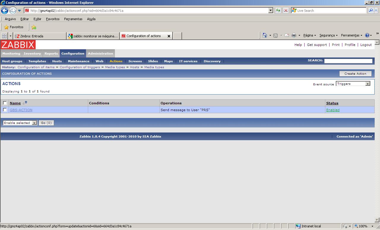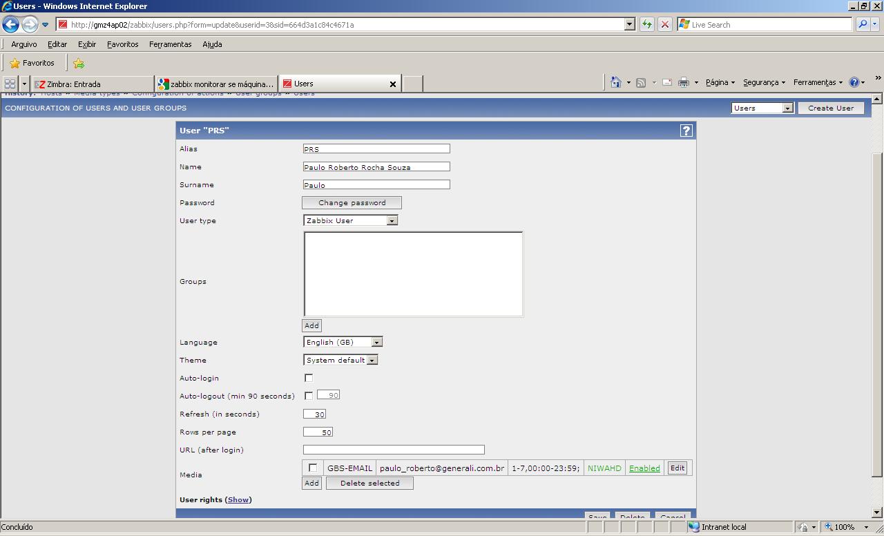 Já fiz vários testes mas não consigo receber os e-mails. Quando desconecto a placa de rede do servidor o Servidor Zabbix detecta a falha, mas não recebo o e-mail.