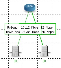 No caso, estou utilizando diversos pontos e mapeando usando sua posição atual em um mapa real, mas quando fica 2 pontos próximas o link (linha verde com as informações de Upload e Download) criado pelo Zabbix fica sobreposto.