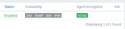 2) Cuando agrego el host y la IP por SNMP el icono nunca se pone en verde (ver imagen). Tampoco en rojo. Con otros equipos con el agente no tengo problemas