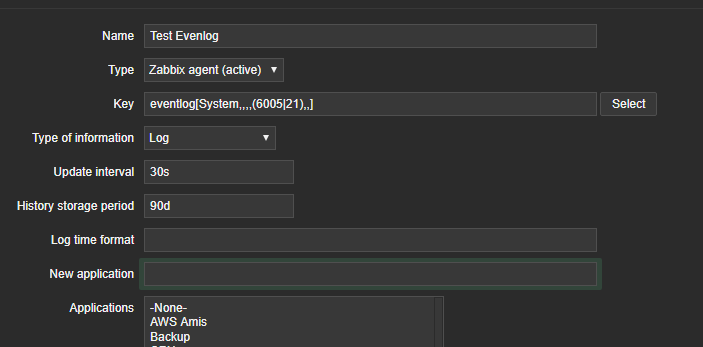 Teste da seguinte forma: eventlog[System,,,,^(21|6005)$]