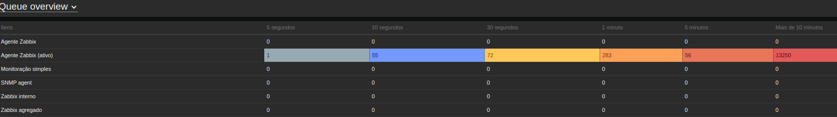 A vários dias estou com grande quantidade de itens em atraso na fila do zabbix ativo e não consigo identificar o problema. Ja foi verificado e os itens em atraso são itens habilitados que estão recebendo informações corretamente em outros hosts.
