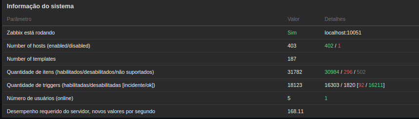 Abaixo algumas configurações do zabbix server.