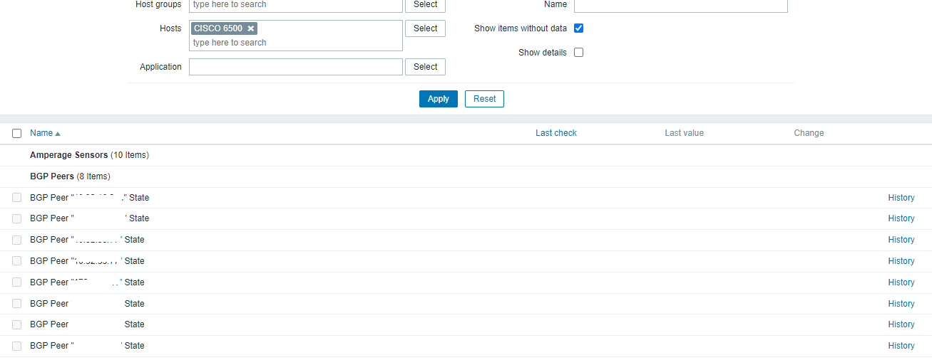 Cuando cargo los template que encuentra en la Web para el monitoreo de los cisco, me reconoce bien el tema de los items. Los triggers me figuran en verde como que esta todo OK y pero yo se que tengo algunas sesiones de BGP caidas pero no se alarman.
