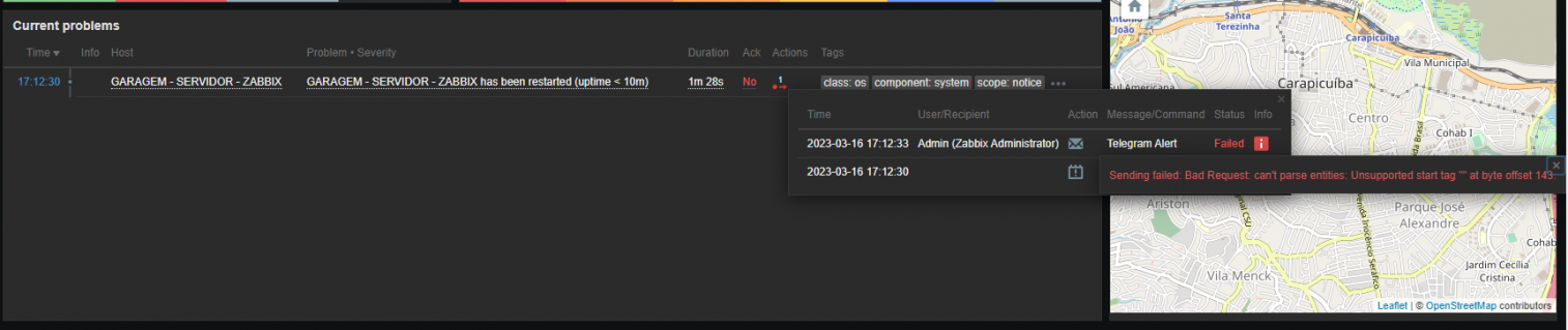 Porem qualquer servidor que preciso reiniciar apresenta um erro no Telegram e a mensagem não é enviada