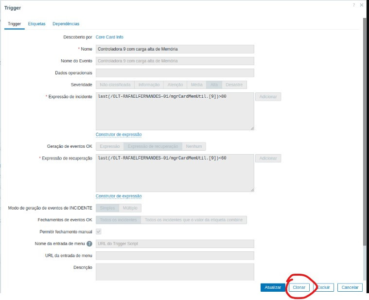 Bom dia, estou precisando alterar uma Trigger de um Host, que foi gerado por um protótipo de trigger de um template.