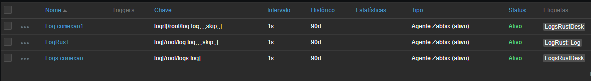 - log do zabbix agent: você deve conferir o log do Host/estação e se necessário no servidor zabbix o log zabbix_server.log