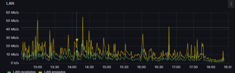 - Olha... a princípio, a informação parece correta no painel do Grafana, Mb/s (megabits por segundo).