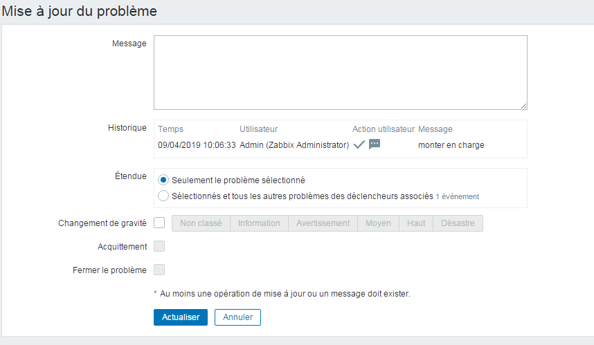 Je suis en version 4 de zabbix et je n'arrive pas comme sur la 2.4 à faire disparaitre manuellement mes alertes (cf Pj)