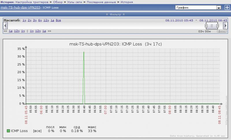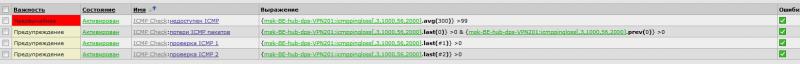Тригер: {msk-TS-hub-dps-VPN203:icmppingloss[,3,1000,56,2000].last(#1)} >0 & {msk-TS-hub-dps-VPN203:icmppingloss[,3,1000,56,2000].last(#2)} >0