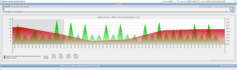 Который день мучает вопрос, где узкое место в системе (мускуль там не успевает, производительности диска не хватает или какие параметры у забикса покрутить), или это нормальное поведения и я зря волнуюсь.
