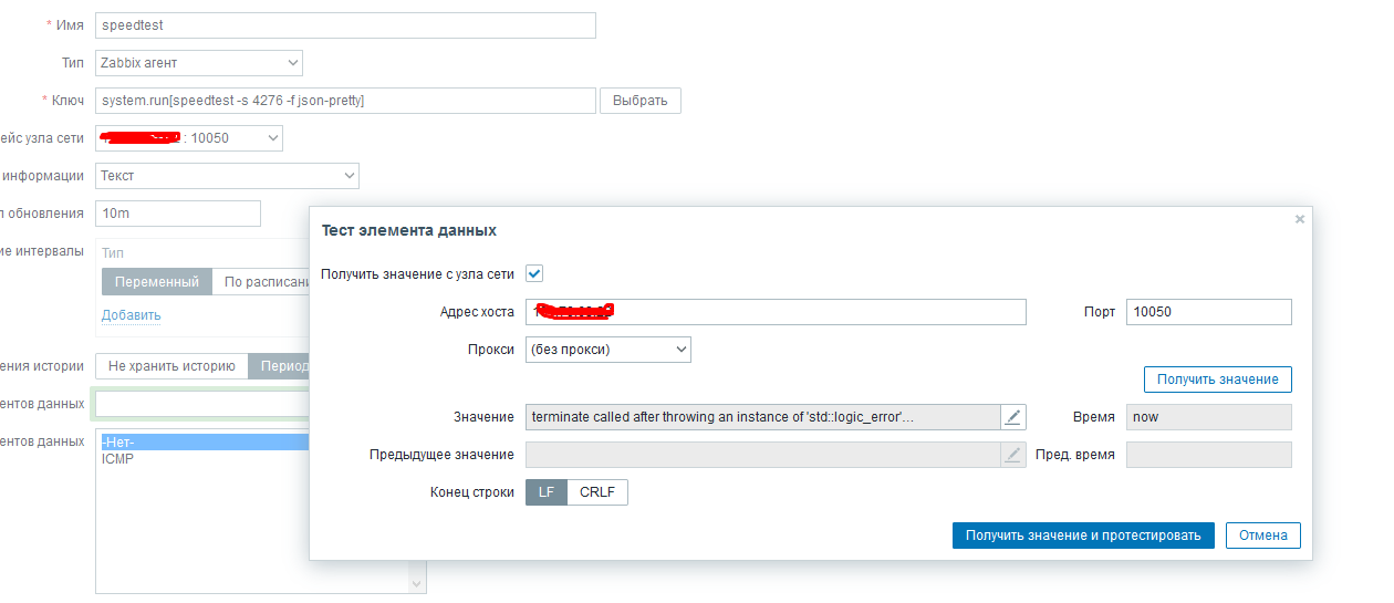 Добрый день. Замыслил я тестирование скорости канала через system.run. Ключ для агента прописал