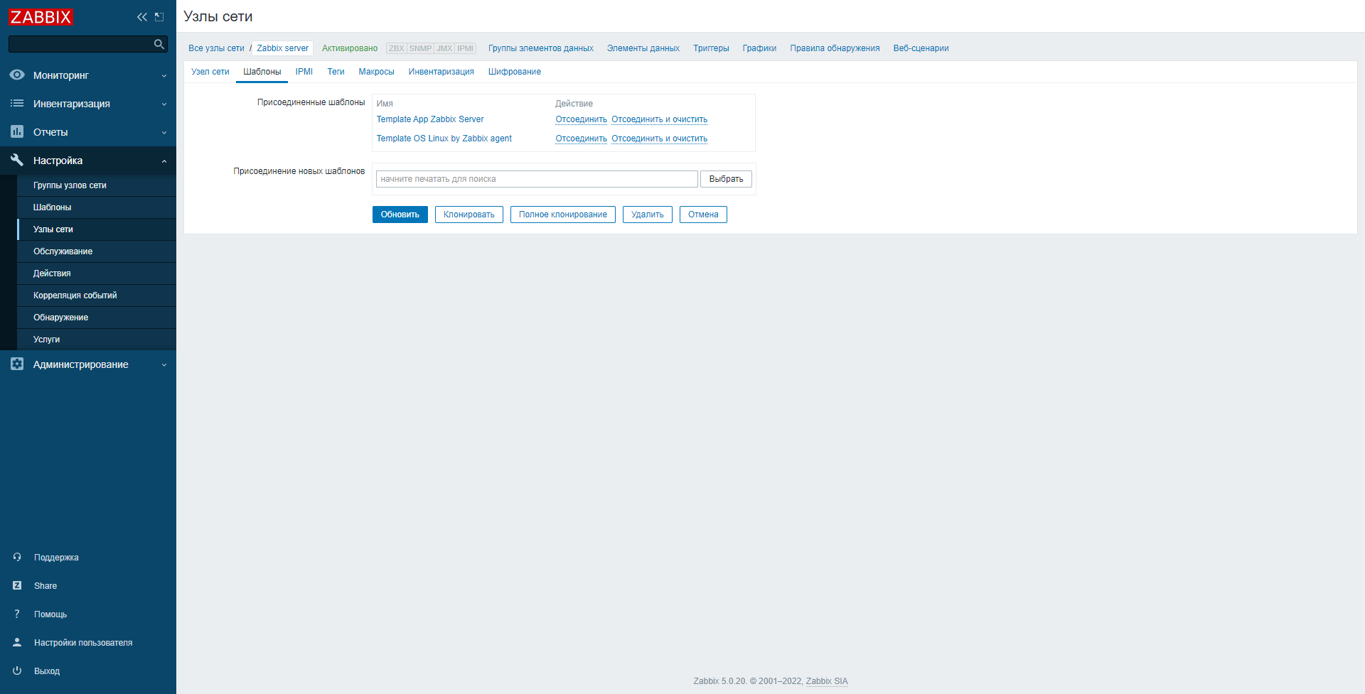 Есть Zabbix Server 5.0.20 на CentOS 8 + MySQL. Работает исправно, мониторит, пока что, все наши сетевые устройства. Как известно, при установке Zabbix сервера по умолчанию создаётся хост Zabbix server с агентом 127.0.0.1 и он занимается "самомониторингом". Вот у меня этот "самомониторинг" не работает, ни в последних данных ни в графиках ничего нет. Я не очень понимаю, куда смотреть, так как в конфиге агента всё корректно, в конфиге сервера тоже, ошибок в логе агента не вижу и в логе сервера, помимо известных для меня "не найденных" хостов тоже нет ошибок. Подскажите, куда копать и куда смотреть. По запросу дам данные с выводом необходимой информации.