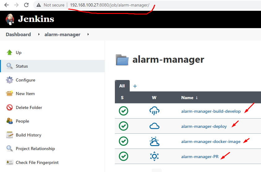 и путь к самой Джобе например "alarm-manager-build-develop" выглядит вот так 192.168.100.27:8080/job/alarm-manager/job/alarm-manager-build-develop/