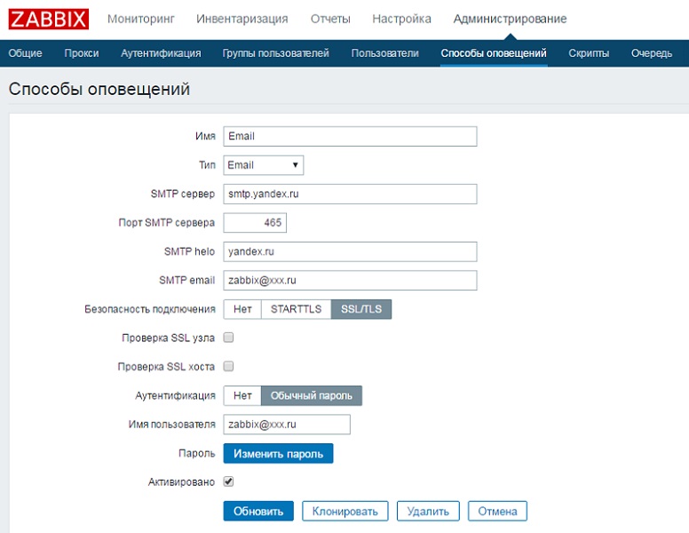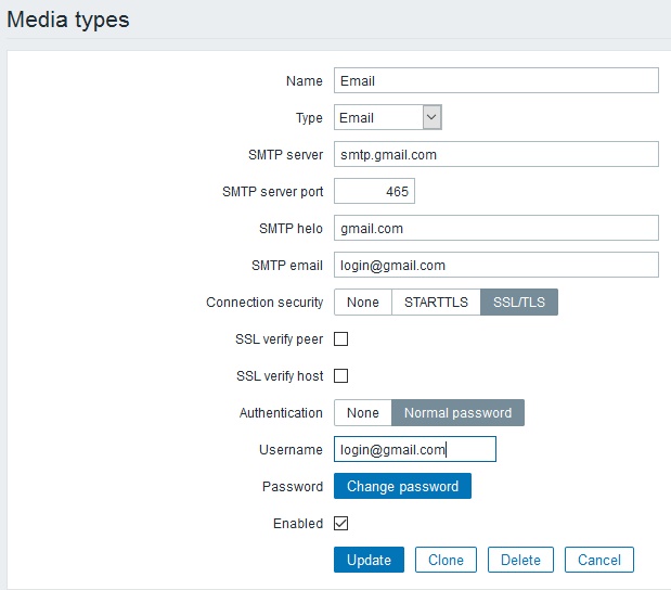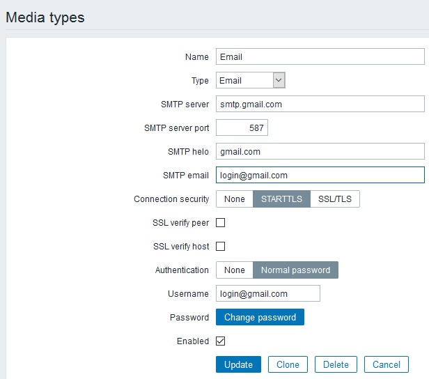 SMTP Zabbix 3.0