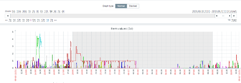 Добрый день. Для удобства суммирования одних и тех же значений с разных устройств использую стекируемые графики. Ожидаю на них суммарное значение например как в Cacti: