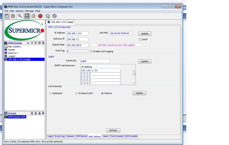 Пытаюсь подключиться к устройству с iLO (моем случае это супермикро)