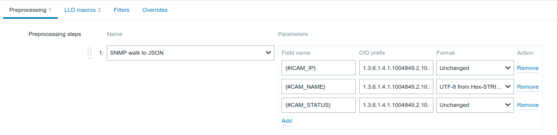 discovery[{#ICAM_IP}, 1.3.6.1.4.1.1004849.2.10.2.2.1.2, {#CAM_NAME}, 1.3.6.1.4.1.1004849.2.10.2.2.1.4, {#CAM_STATUS}, 1.3.6.1.4.1.1004849.2.10.2.2.1.3]