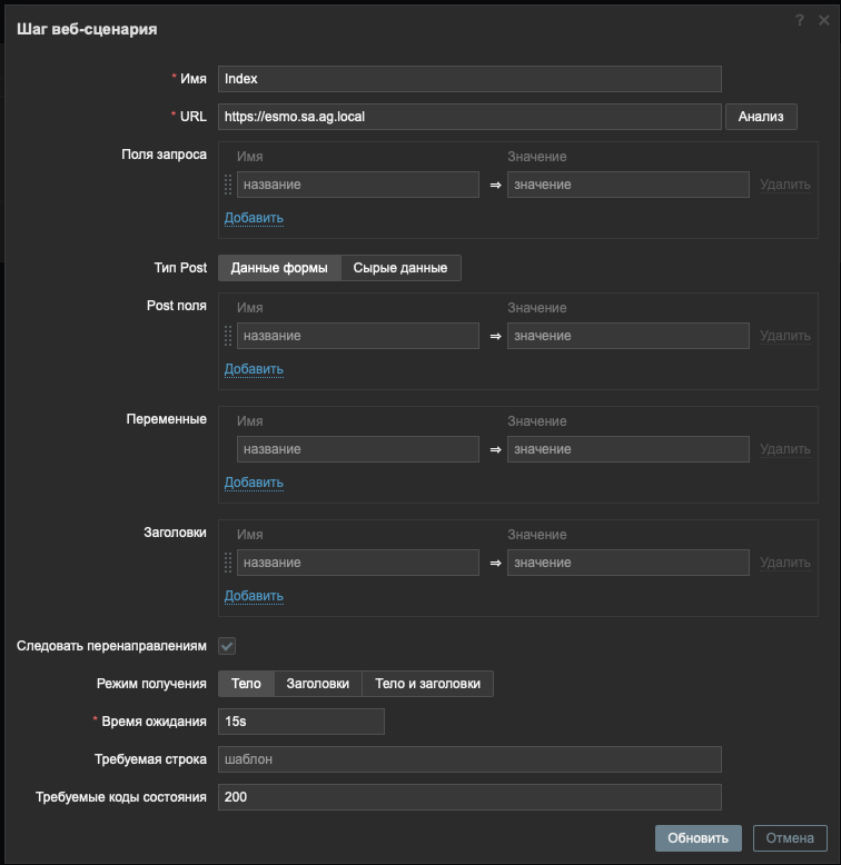 last(/Zabbix server/web.test.rspcode[Web-Address,Index],#3)<>200