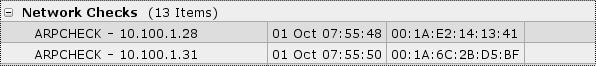 <item type="0" key="arpcheck[ip]" value_type="1"> <description>ARPCHECK - xxx.xxx.xxx.xxx</description> <delay>600</delay> <history>3</history> <trends>365</trends> <status>0</status> <units></units> <multiplier>0</multiplier> <delta>0</delta> <formula>1</formula> <lastlogsize>0</lastlogsize> <logtimefmt></logtimefmt> <delay_flex></delay_flex> <applications> <application>Network Checks</application> </applications> </item>