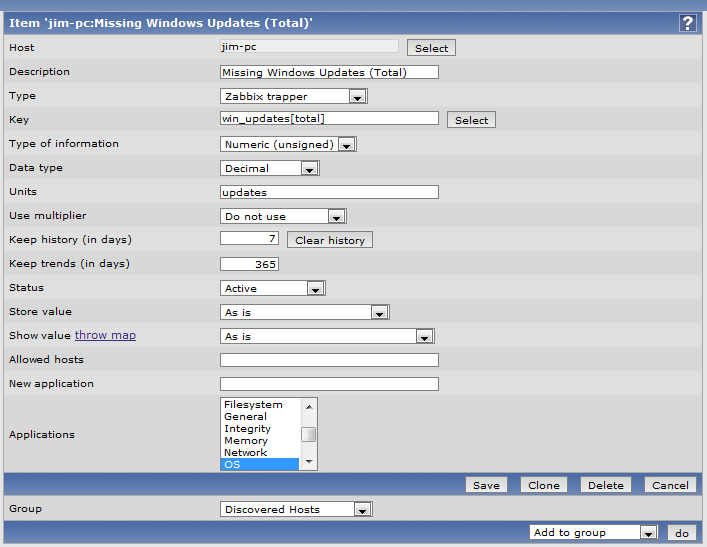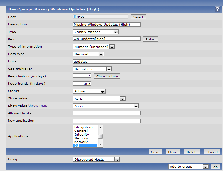 The original request was here: http://www.zabbix.com/forum/showthread.php?p=49493. Someone was looking for a way to monitor available Windows updates. I put together a crude script based on the one here: http://www.microsoft.com/technet/scr....mspx?mfr=true