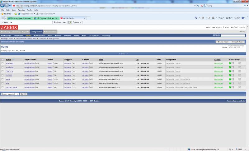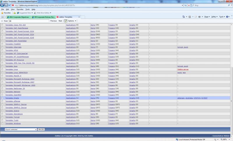 We are running Zabbix 1.8.4 on CentOS5. I have imported the templates from the 'template' folder in the orabbix-1.2.0-RC1 install zip. I have created two hosts CPATCH and E1TEST and have associated them to Template_Oracle. Screen captures of my templates and of the hosts attached. Thanks!!Comment