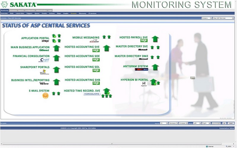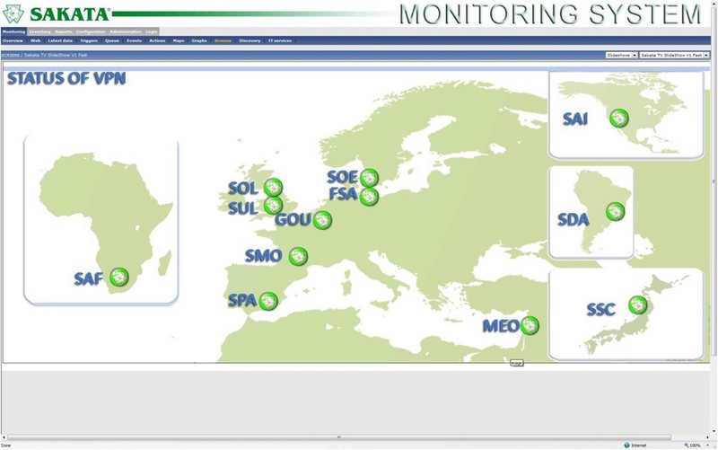This is either a monitoring tool for the IT dpt and a communication tool. This slideshow is also explained to users/management to explain the complexity of our network.