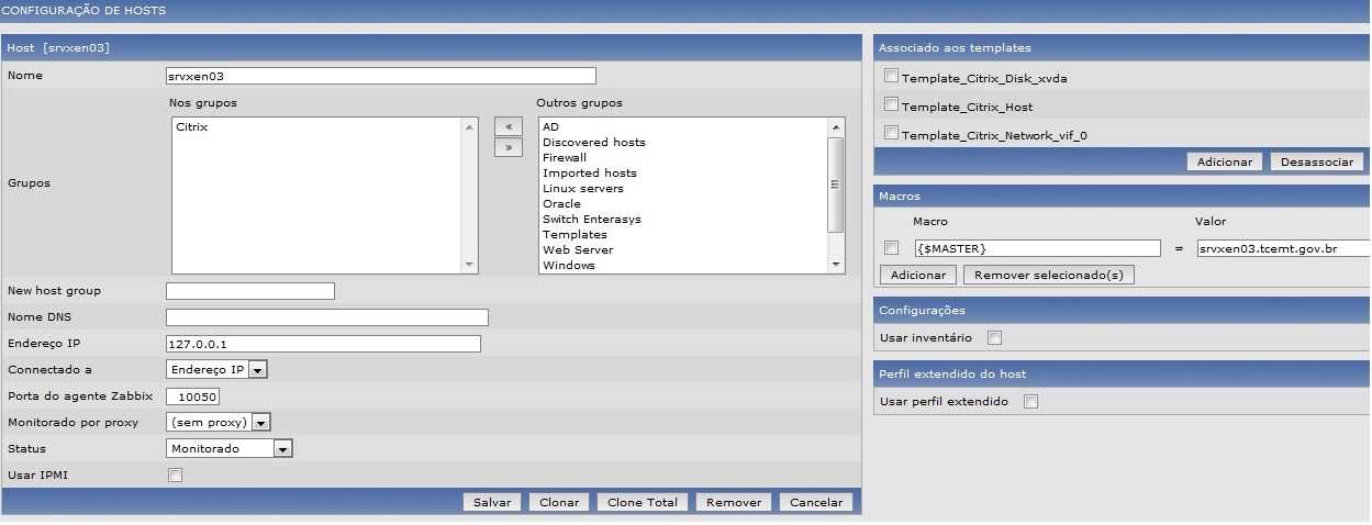 Templates are provided for both XenServer hosts and VMs. Hosts monitoring follows the same logic as the VMware monitoring solution (http://www.zabbix.com/forum/showthread.php?t=15691). For each host IP is set to Zabbix server IP in order to enable running Zabbix passive items. Probes citrix.py and citrix-storage.py are associated only to master host(s).