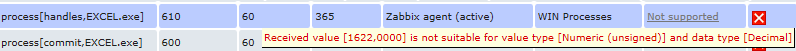 All items except WIN Process memory bytes committed may return ZBX_NOTSUPPORTED on first poll.