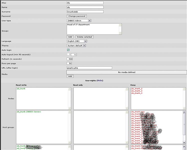 Now if user Joe has the follwoing setup he can configure items and hosts in Server_Hosts_Group_1: