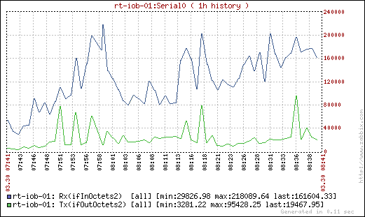 I'm monitoring a cisco router. I've built a graph with two variable (ifInOctects and IfOutOctets). It's attached to this post.