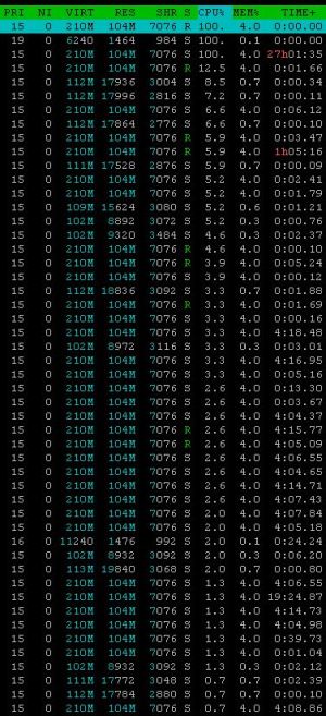 PID USER PR NI VIRT RES SHR S %CPU %MEM TIME+ COMMAND