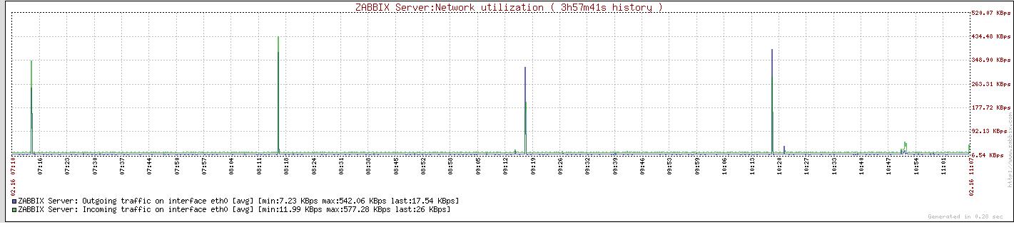 The network on my zabbix server spikes every hour, it is very similar to what I found in this thread, but I think this was patched already. I'm using Ubuntu server, kernel: 2.6.27-9-server.