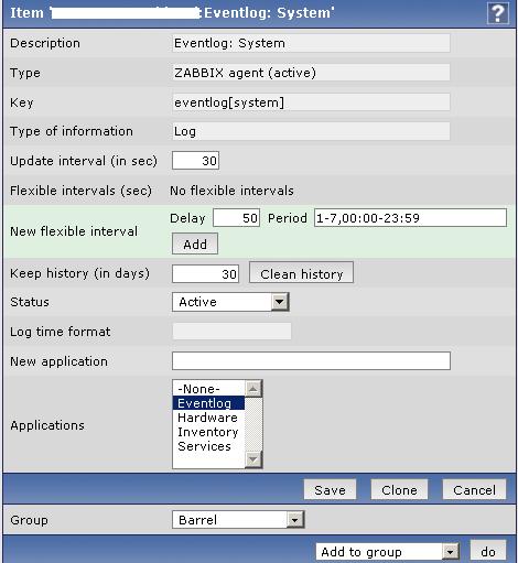 item like eventlog[application] ON(ACTIVE) on all servers and here is what happened: