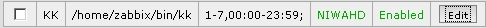 4.a. The script is /home/zabbix/bin/kk which only makes an echo "hello" >> log.txt, and it is working with user zabbix from the console.