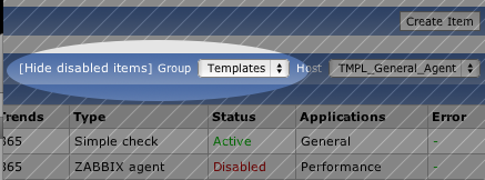 When I go into items and select template_linux it only shows me enabled items.