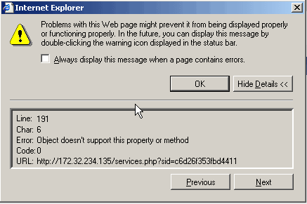 After some unknown reasons, I can't add/edit/delete service any more, I notice there is a error icon in the bottom, and the error is Object doesn't support this property or method.