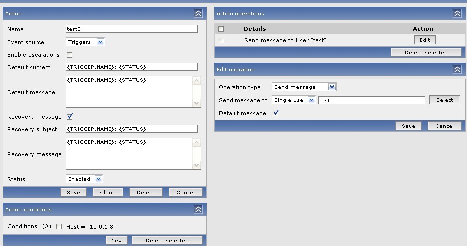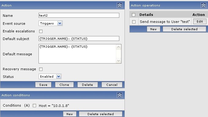 the add the action test2 for host 10.0.1.8