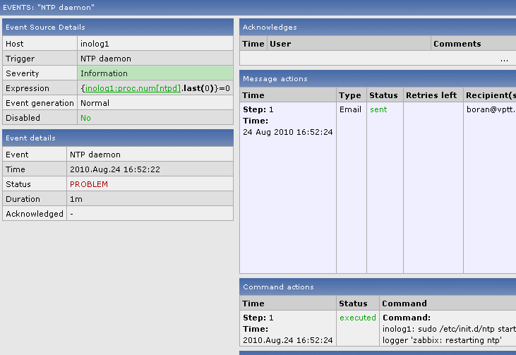 For most systems I get the email generated by Linux-servers-Action, and just one single systems triggers ntp-restart-action.