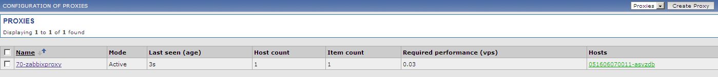 cat /etc/zabbix/zabbix_proxy.conf ############ GENERAL PARAMETERS ################# Server=10.129.0.151 #ServerPort=10051 Hostname=70-zabbixproxy DataSenderFrequency=10 Timeout=30 PidFile=/var/run/zabbix/zabbix_proxy.pid LogFile=/var/log/zabbix/zabbix_proxy.log LogFileSize=5 DebugLevel=3 ConfigFrequency=60 ############# DATABASE CONNECTION ################# DBName=zabbix DBUser=zabbix DBPassword=Pa$sW0RD DBSocket=/var/run/mysqld/mysqld.sock