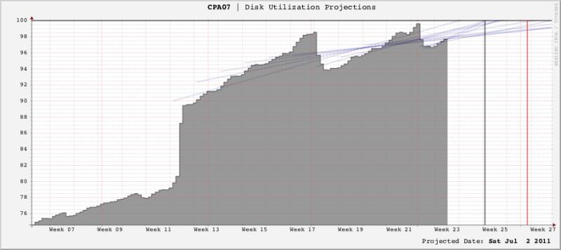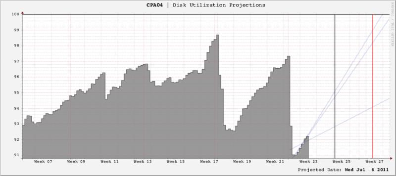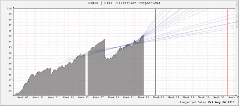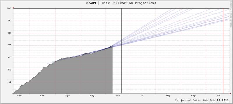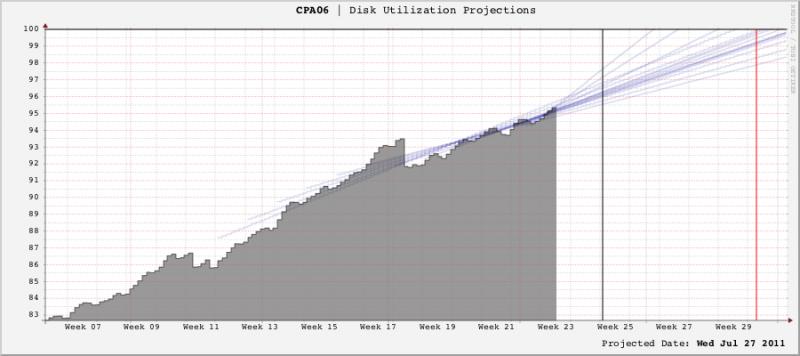 I have a solution in place that I'd like to transistion, this alerts on x days of available space.