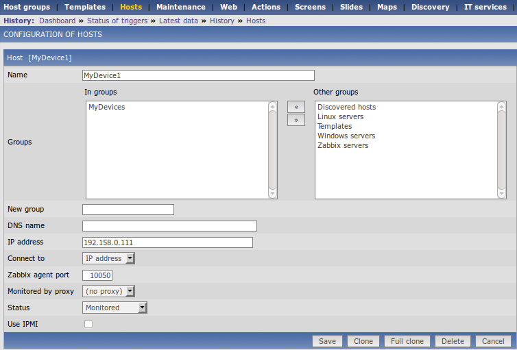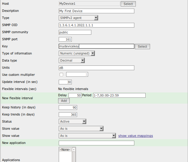 I have an embedded device that is SNMP v2c enabled. I have installed Zabbix on Ubuntu and created a host to monitor this device.